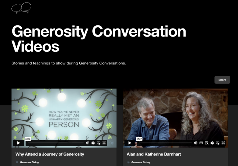 Use this playlist to access the stories and teachings you will show at the Generosity Conversation. For peace of mind, we recommend downloading these videos before the event in case WiFi at the venue is unreliable.