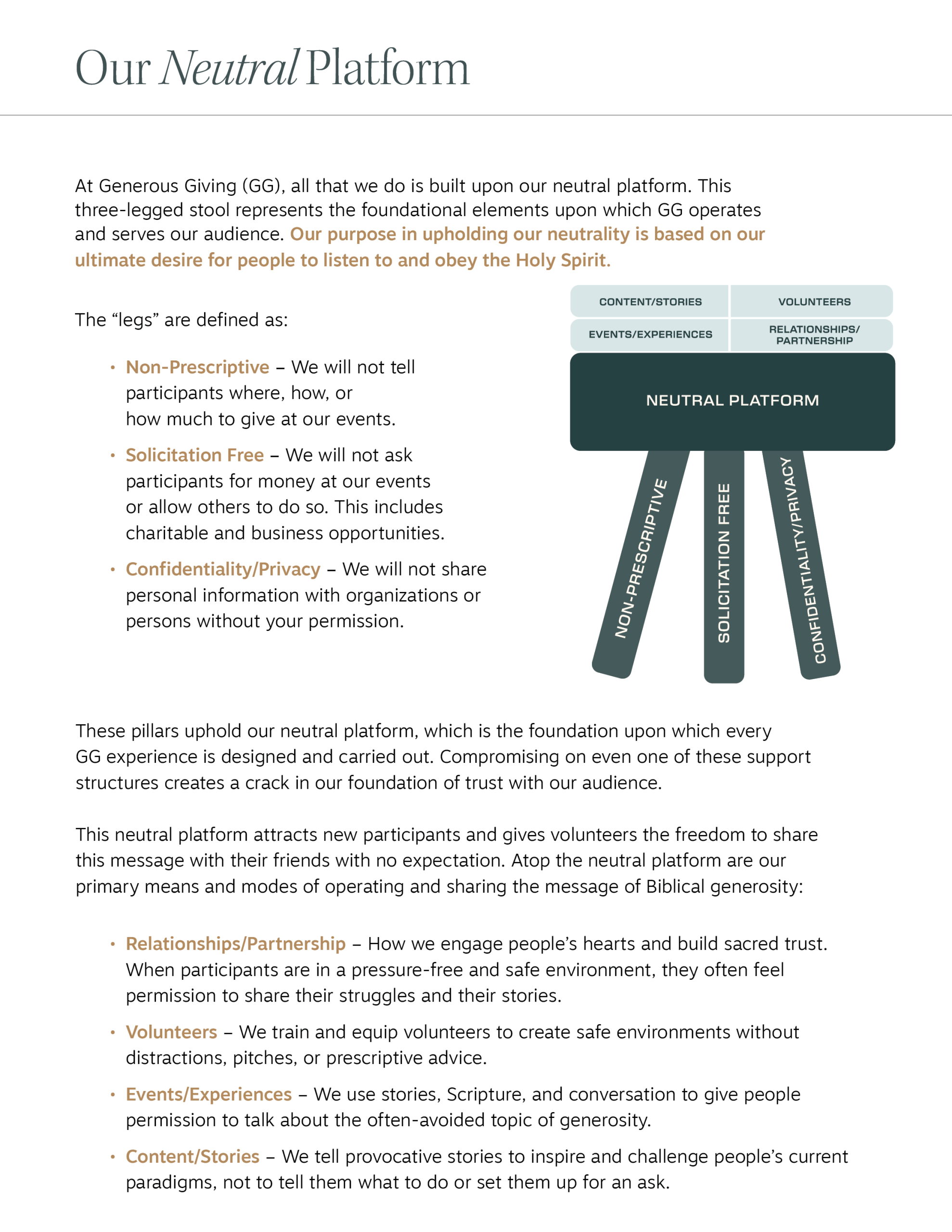 In order to maintain a commitment to Generous Giving’s neutral platform and maximize life change in participants’ lives, we are asking every volunteer facilitator to sign this agreement. The spirit of this agreement is for the facilitator to approach facilitating a JOG as a place of ministry, free from any self-interested motives.